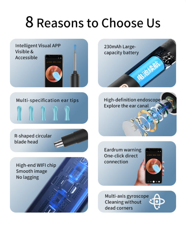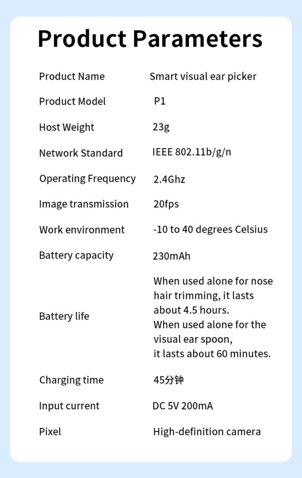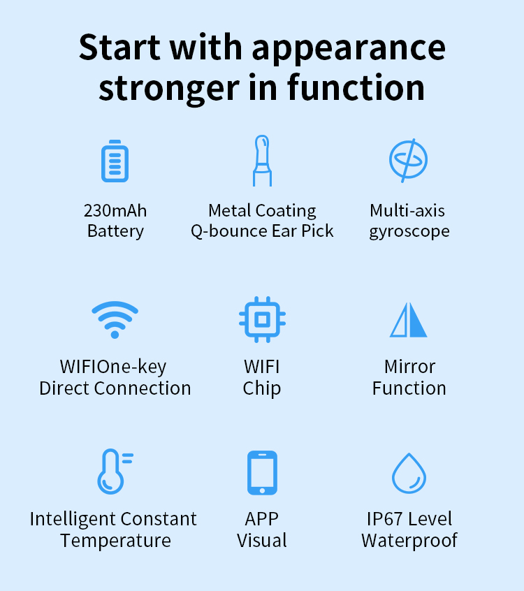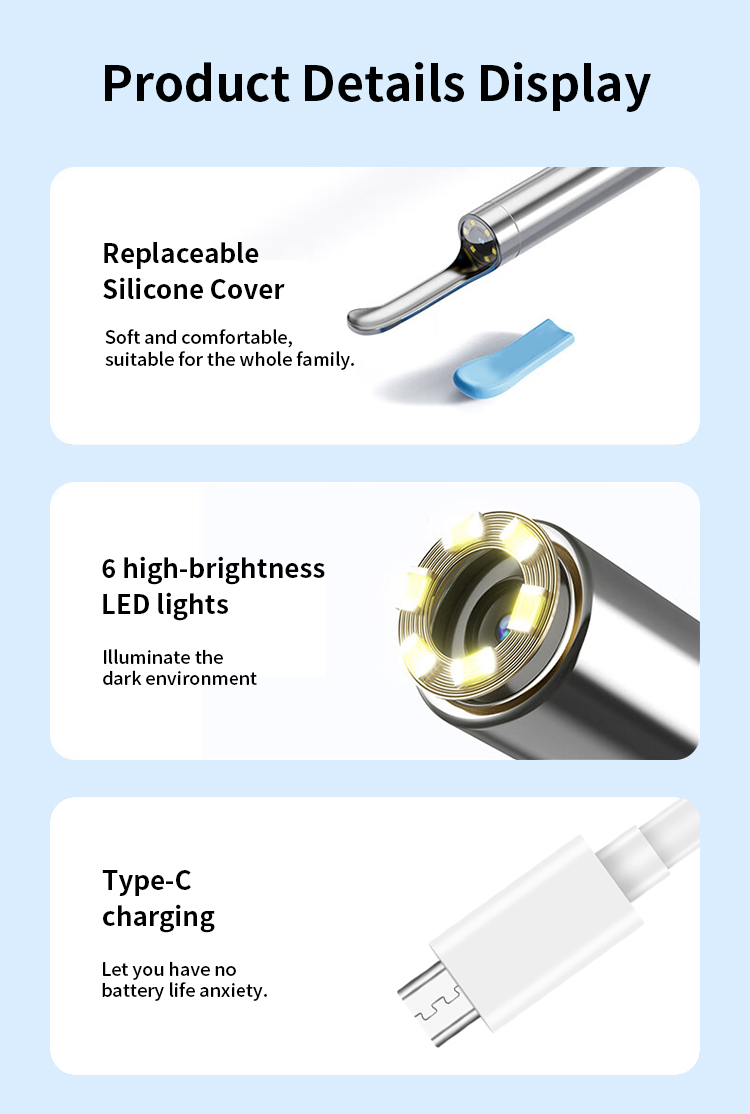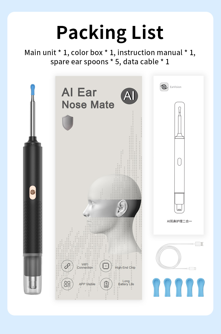 Accessories: 5 silicone ear spoon covers, 1 data cable