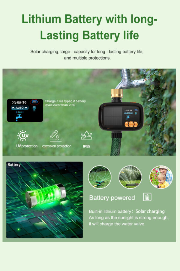 When watering, you can see the nearby weather conditions and the amount of water on your mobile phone