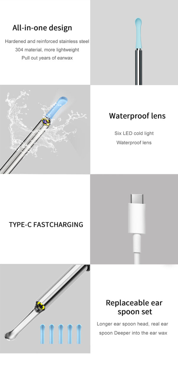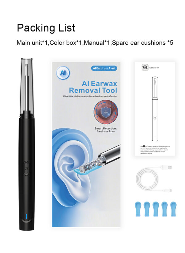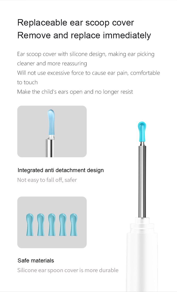 Accessories: 5 silicone ear spoon covers, 1 data cable